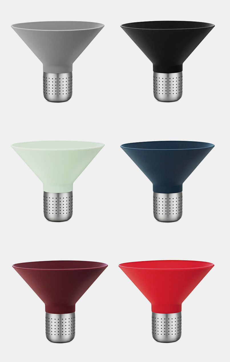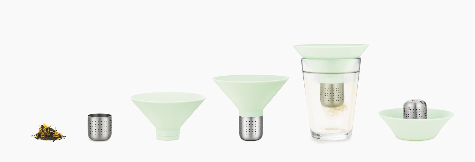 Tea Strainer ist ein innovatives, flexibles und funktionelles Teesieb aus Silikon und Edelstahl. Es kombiniert Teesieb und Auffangschale in einem Produkt. Die Schale nimmt überlaufende Flüssigkeit auf und verhindert dadurch Flecken auf dem Tisch.Mit Tea Strainer bleibt der Tee während des Ziehens warm und aromatisch. Ist der Tee fertig, kann man das Teesieb mithilfe des kleinen Griffs aus der Tasse entfernen, ohne sich dabei die Finger zu verbrennen. In Analogie zu einer Hutkrempe lässt sich der Silikonrand einfach umstülpen. So entsteht eine Tropfschutz. Tea Strainer passt in Tassen, Becher und Teekannen. Durch die zweiteilige Konstruktion ist das Sieb leicht zu reinigen und spülmaschinenfest. Material: Silikon und Edelstahl. Farben: grau, schwarz, blau, mint, bordeaux, rot. Größe: H: 9,2cm x Ø: 11,4cm.