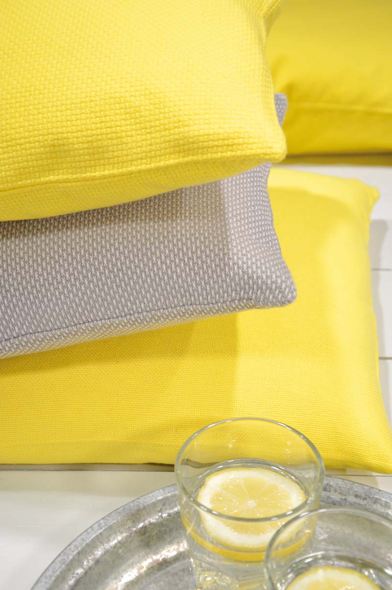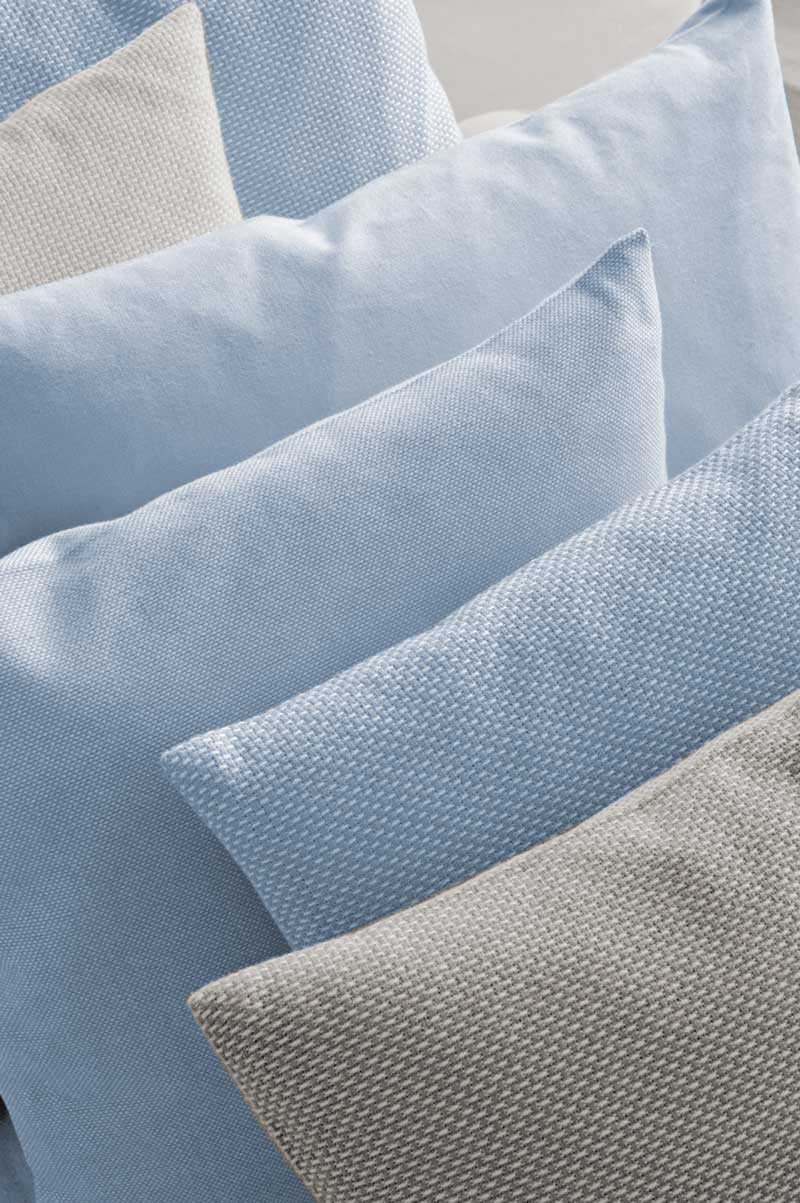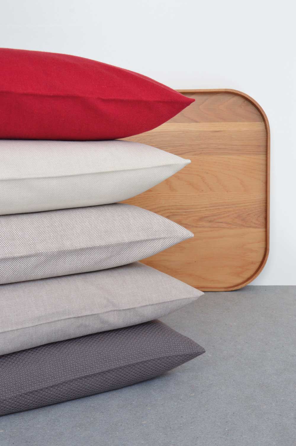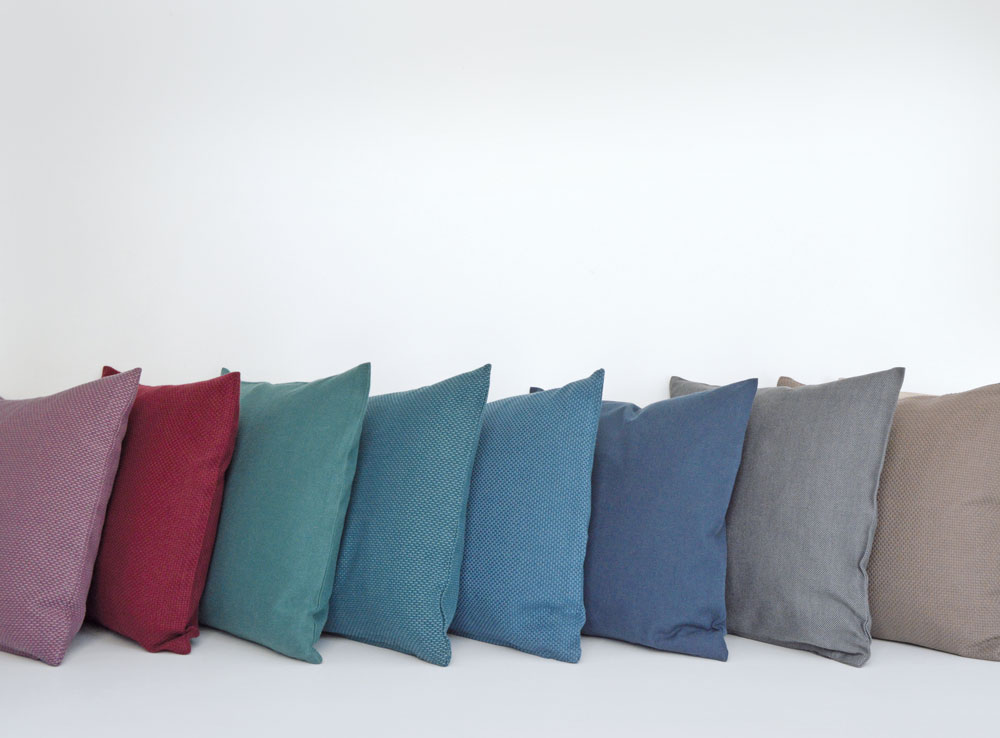 Anzio, Asco und Asia drei unterschiedliche textile Strukturen, die die Basis alle unifarbenen Kissen- und Tischserien der Firma ‚Scantex – Wohnen mit Natur‘ sind.