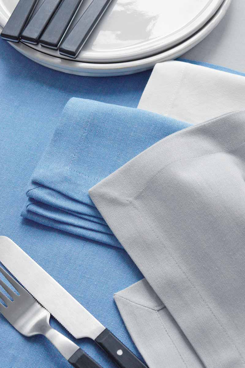 Lunch ist eine klassische Leinwandbindung, die allen unifarbenen Tischserien der Firma als Grundlage dient.